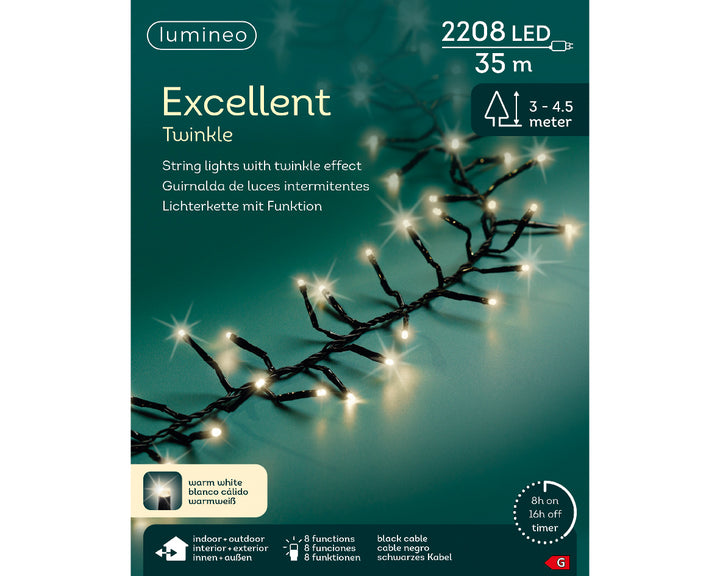 Cluster de lumières de Noël LED classic warm 10 m - 1128 lumières avec 8 effets scintillants :