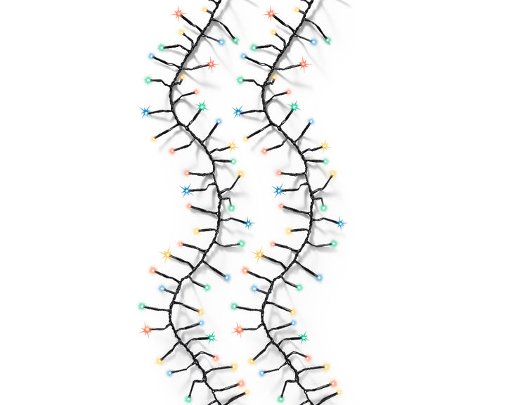 Het zwarte lichtsnoer heeft in totaal maar liefst 648 LED lampjes en als ze branden geven ze een prachtige multi colour licht. Doordat de excellent LED lampjes dichter op elkaar zitten dan bij de compact verlichting, krijg je een warme, aangename sfeer. Dankzij het mindere aantal lampjes kan je nog veel kerstballen en versieringen in je kerstboom hangen. Om het helemaal af te maken kun je de ledjes in 8 verschillende standen laten branden, denk aan knipperen, flikkeren, druppelen etc.