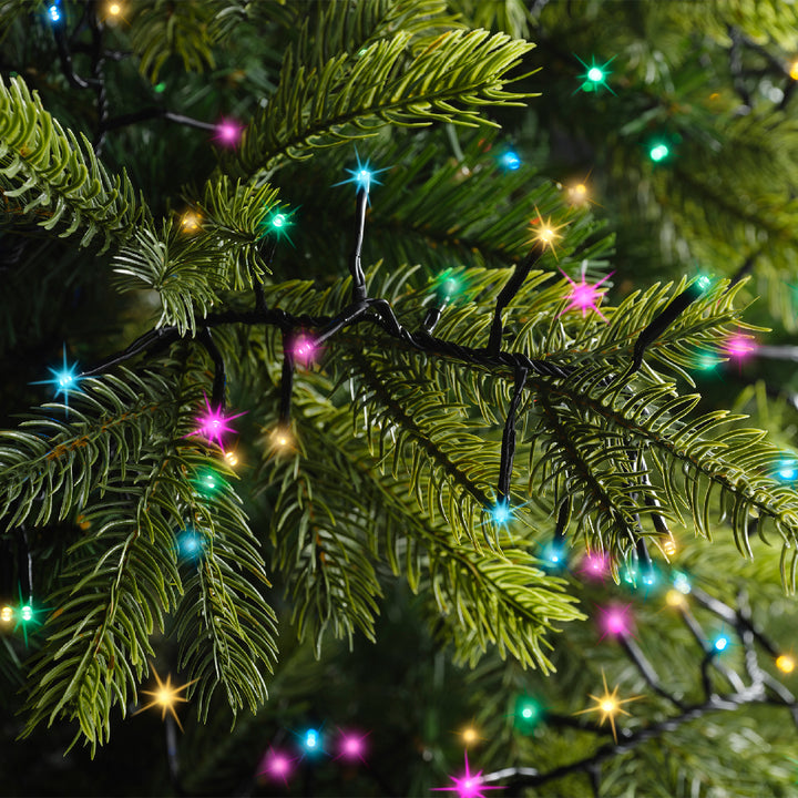 Het zwarte lichtsnoer heeft in totaal maar liefst 2208 LED lampjes en als ze branden geven ze een prachtige soft multi colour licht. Doordat de excellent LED lampjes dichter op elkaar zitten dan bij de compact verlichting, krijg je een warme, aangename sfeer. Dankzij het mindere aantal lampjes kan je nog veel kerstballen en versieringen in je kerstboom hangen. Om het helemaal af te maken kun je de ledjes in 8 verschillende standen laten branden, denk aan knipperen, flikkeren, druppelen etc.