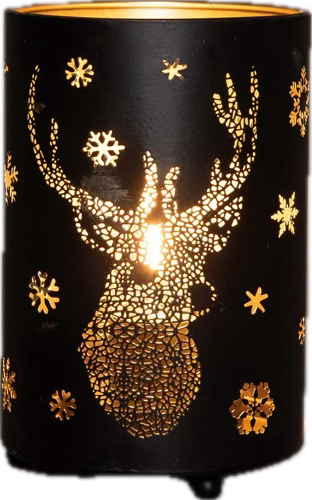 Verlicht metalen lantaarn met wintertafereel en hertjes. Dankzij het metalen frame kan je het makkelijk overal neerzetten en gaat het niet zomaar stuk. Op de achtergrond van de metalen lantaarn vind je een prachtige verlichte hertenkop met sterretjes terug. Daarnaast bevinden zich ook LED lichtjes, zodat deze metalen lantaarn ook licht geeft in de duisternis. De lichtjes werken op batterijen, dit is erg handig omdat je geen kabel moet wegwerken en je dient geen stopcontact meer in de buurt te hebben.