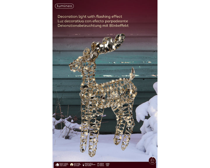 Outdoor verlicht hert met goud polyester klein (Nieuw)
