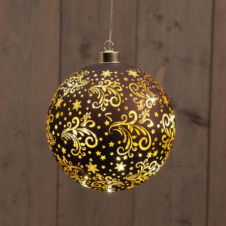Deze kerstbol met zijn warme bruine en gouden kleur zal prachtige fonkelen door de lichtjes naast jouw andere decoratie, zonder alle aandacht te stelen. Je kan deze overal plaatsen, zolang het touwtje maar ergens op kan rusten. Wil je niet veel tijd spenderen, maar toch iets subtiels maar sfeervol hangen, dit is je product.