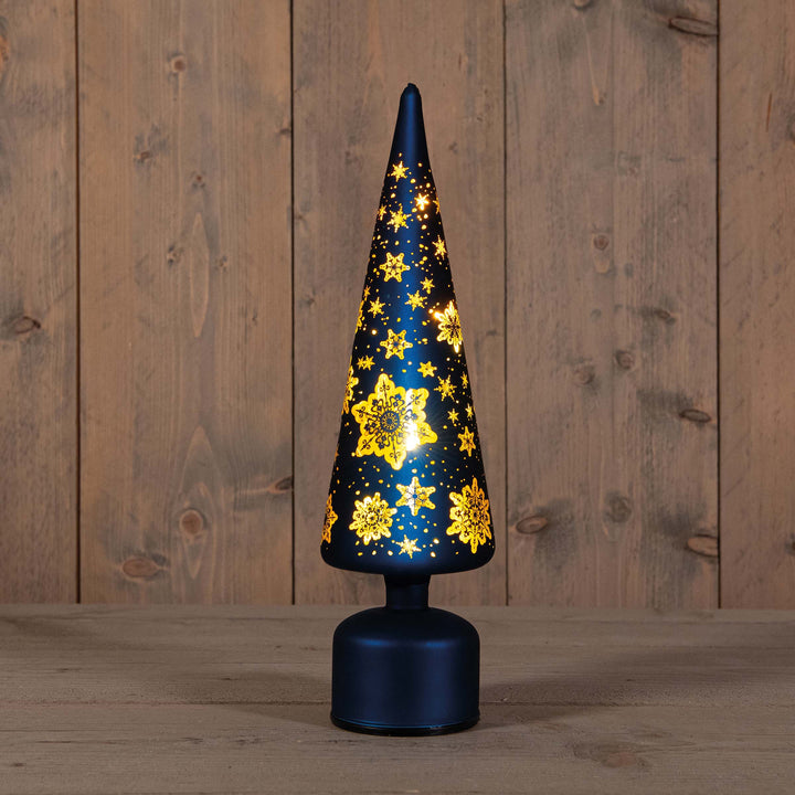 Deze kerstboom met zijn warme blauwe en gouden kleur zal prachtige fonkelen door de lichtjes naast jouw andere decoratie, zonder alle aandacht te stelen. Je kan deze overal plaatsen. Wil je niet veel tijd spenderen, maar toch iets subtiels maar sfeervol hangen, dit is je product.