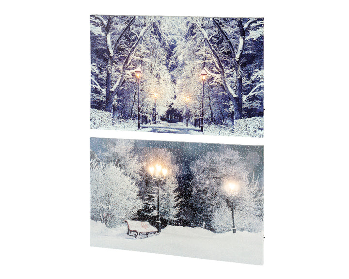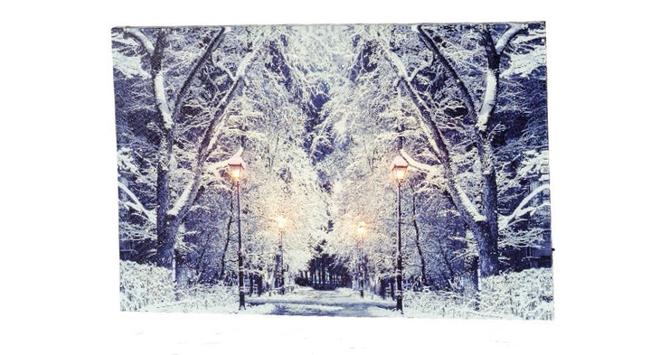 Verlichte kerstschilderij met wintertafereel en verlichte straatlampen (Nieuw)