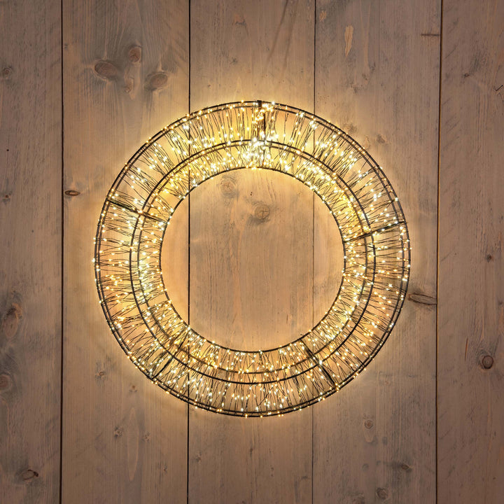 LED kerstkrans van 48 x 48 x 10 cm met klassiek warme / warm witte verlichting, 1400 LED lampjes.
